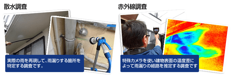 また、雨漏りしている場合は、特殊な赤外線カメラを使い原因箇所を特定します。