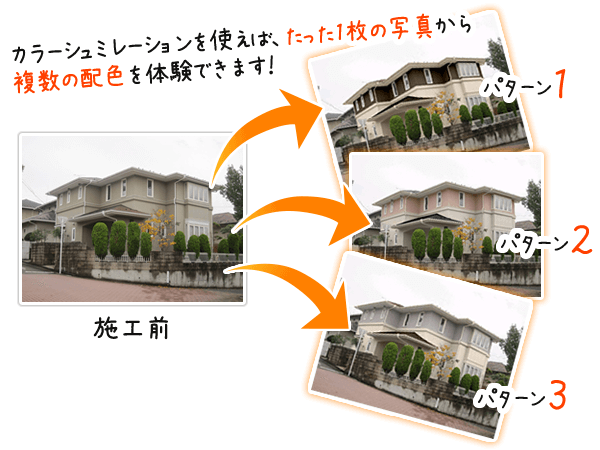 色選びにカラーシミュレーションも可能!さらに、塗板や現地での試し塗りもできるので失敗なし!