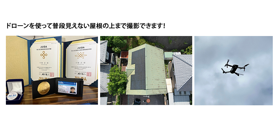 ドローンを使う理由は、普段見ることのできない屋根を安全に調査できるからです。